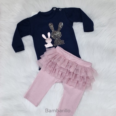 Spodenki zdobi tiulowa spódniczka w tym samym kolorze.